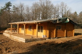 Deze Canadese blokhut hebben we 10 jaar geleden zelf gebouwd en is speciaal voor hondjes op de verhuurmarkt voor vakantiehuizen gebracht.